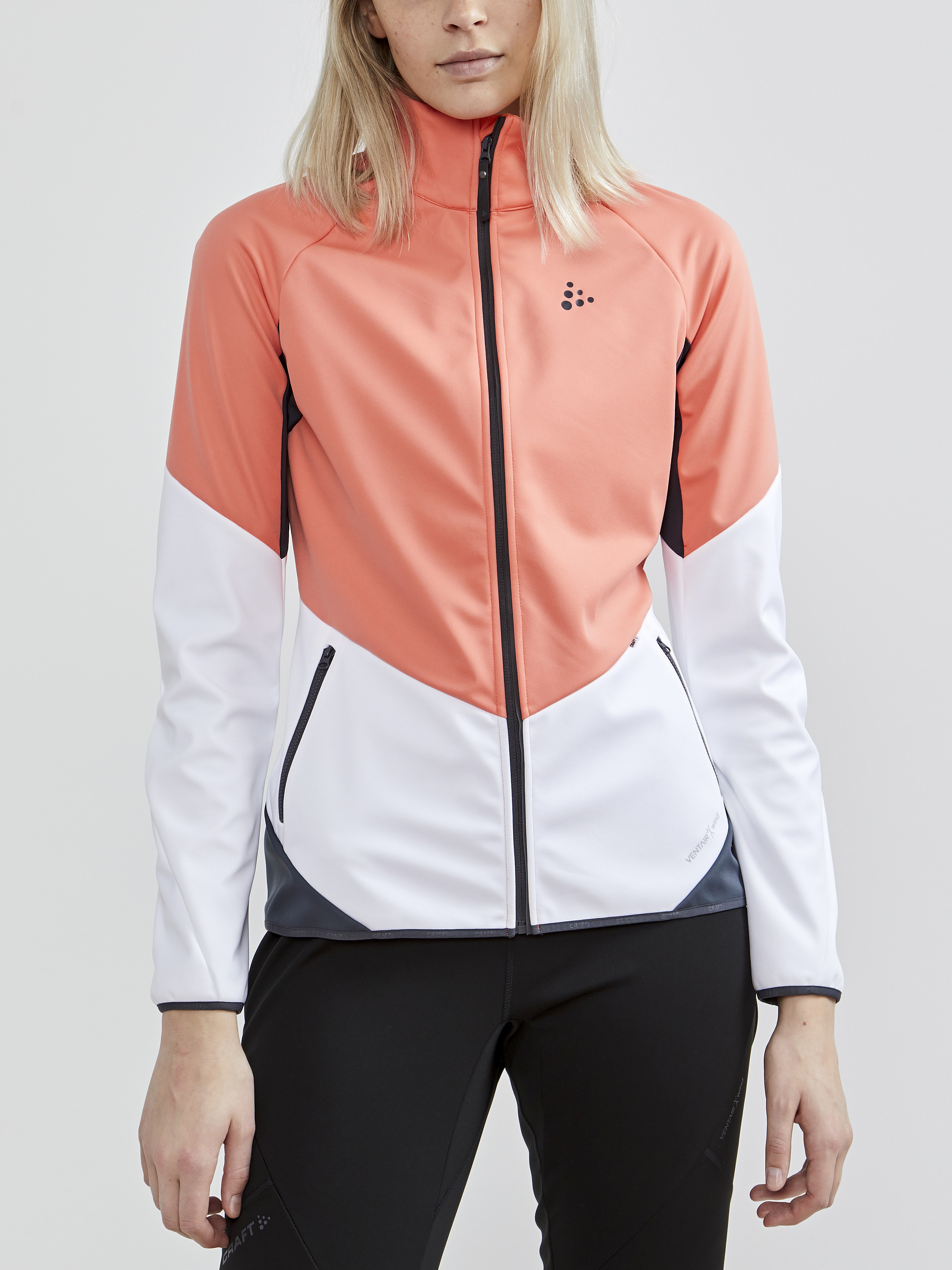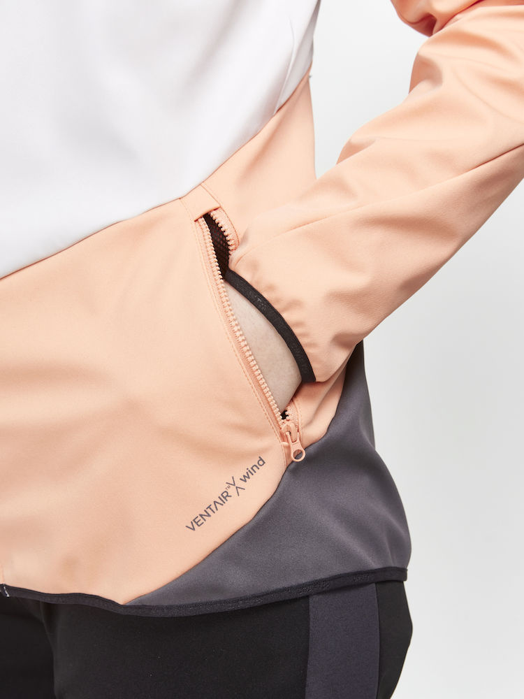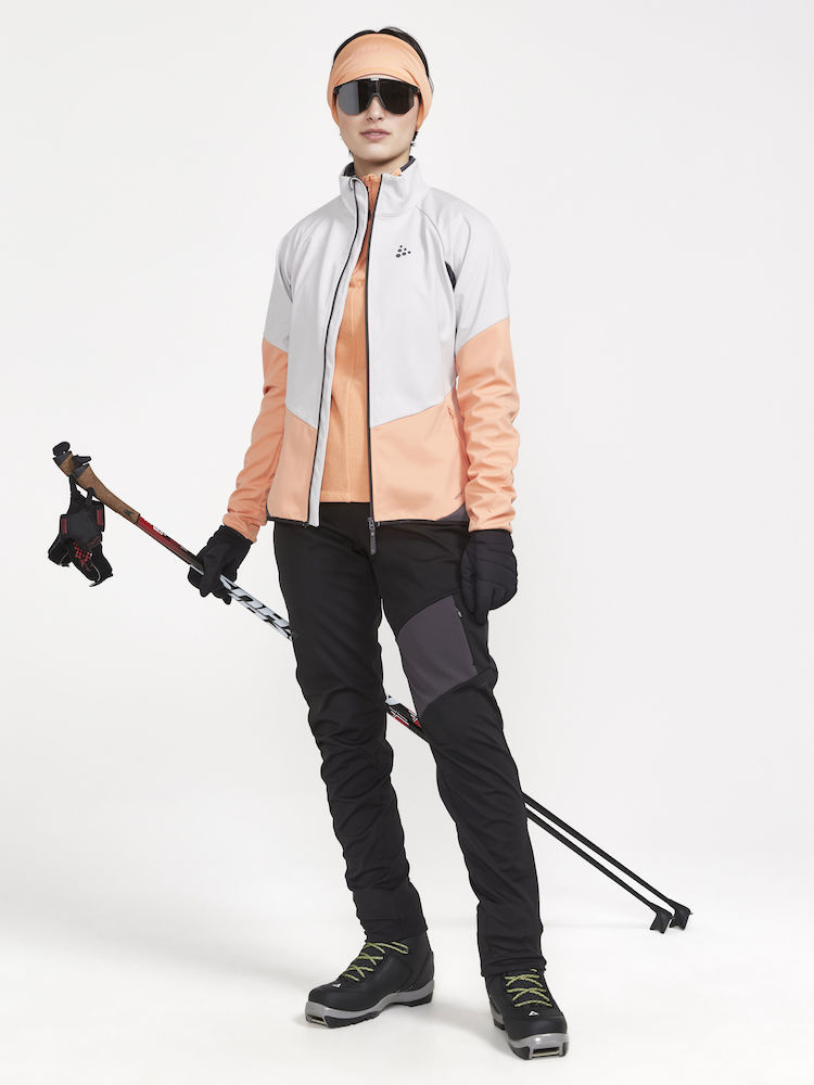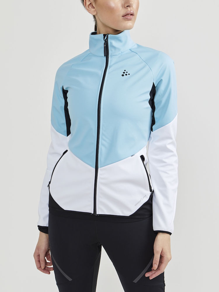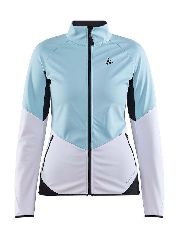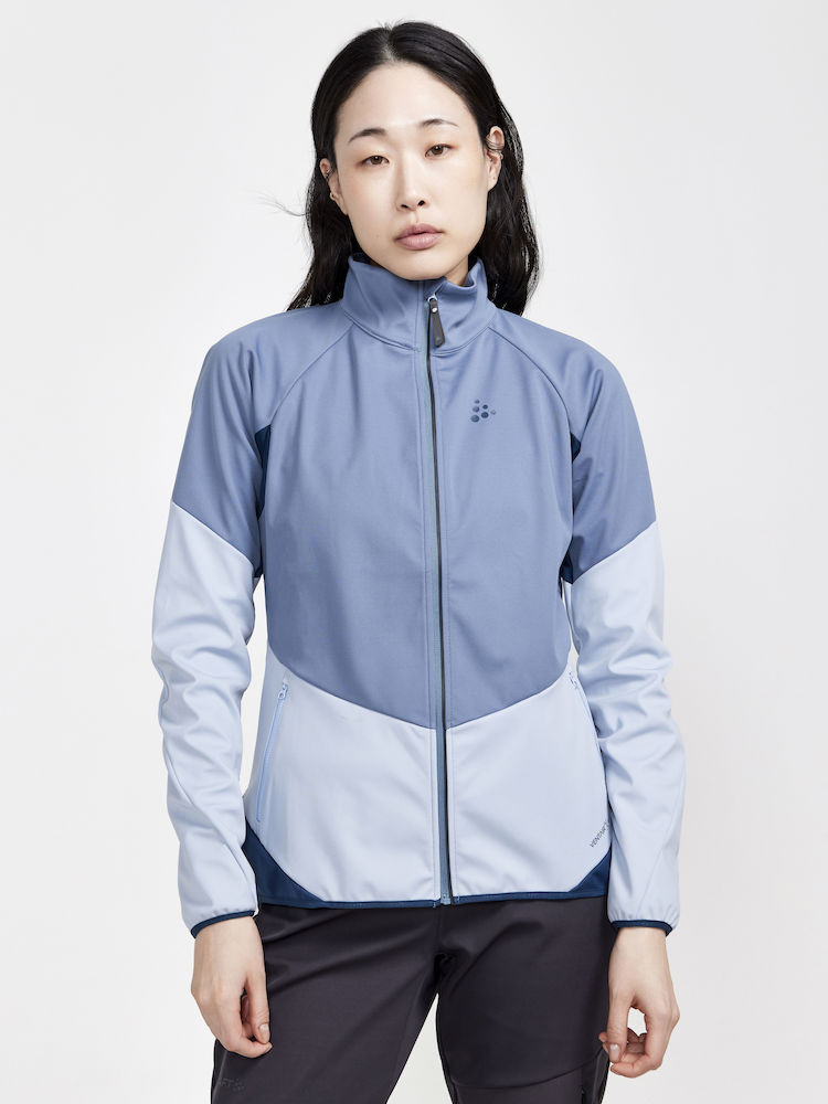 Dámská softshellová bunda CRAFT Glide s membránou VentAir Wind určena na pohodové běžecké lyžování nebo jiné outdoorové aktivity v zimním období.