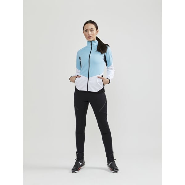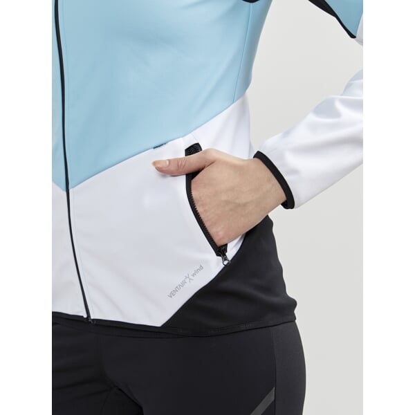 Dámská softshellová bunda CRAFT Glide s membránou VentAir Wind určena na pohodové běžecké lyžování nebo jiné outdoorové aktivity v zimním období.