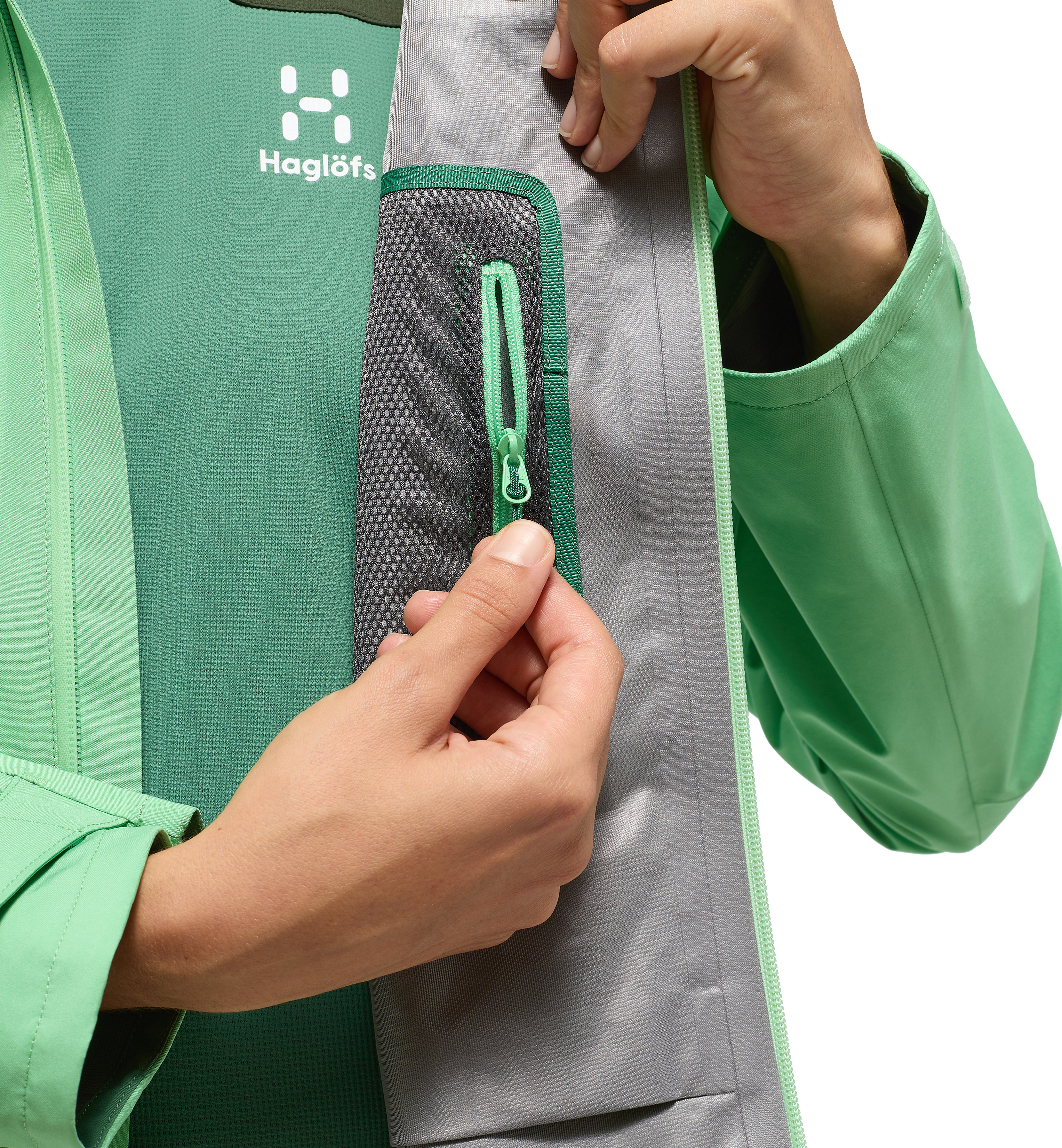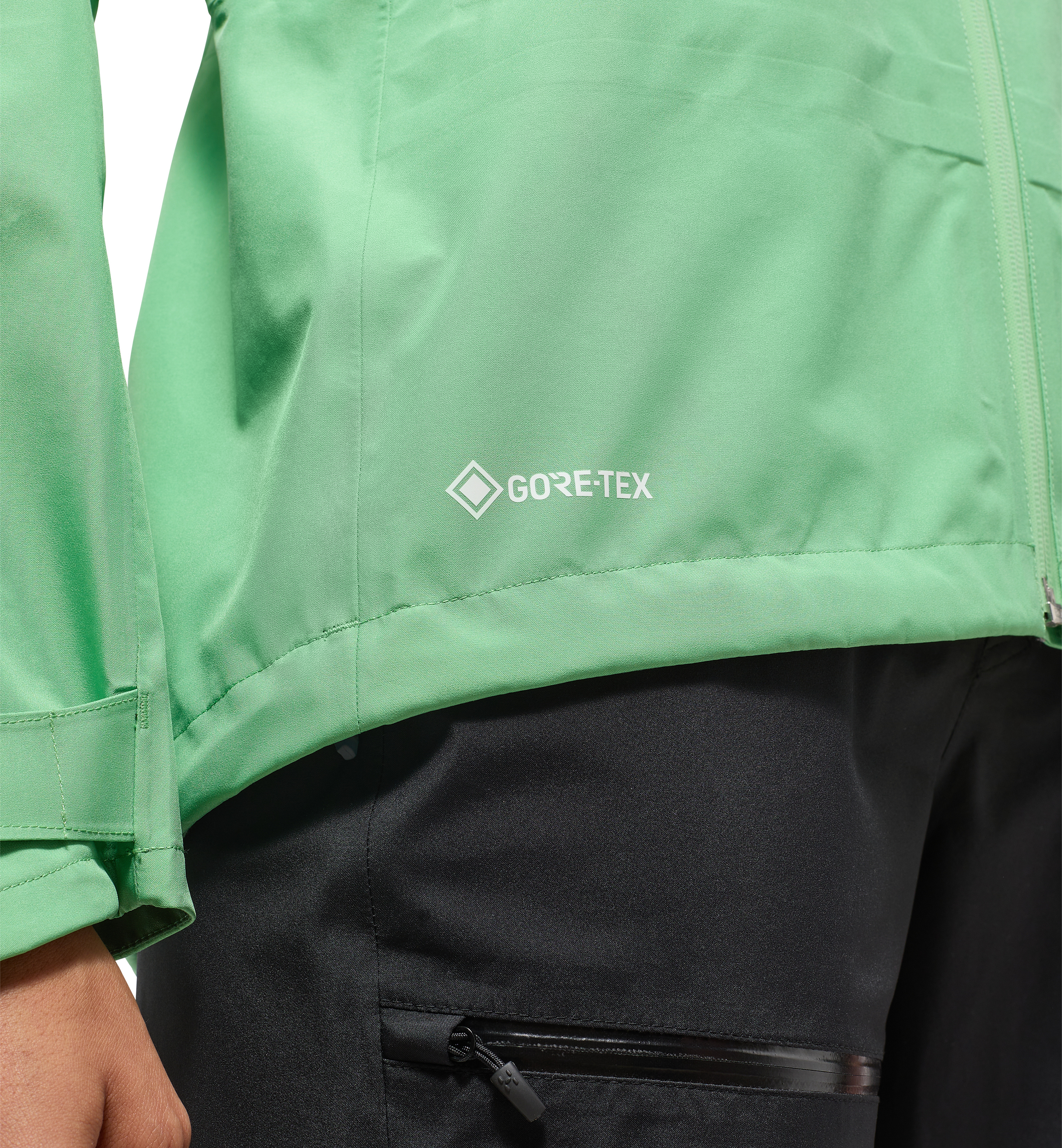 GORE-TEX 3L hladká struktura, 100% recyklovaného polyamidu, 75 denierů, s vodním sloupcem 28 000m2 a propustností vody RET 9. Materiál je schválen Bluesign®. PFC-Free impregnace proti vodě a špíně.