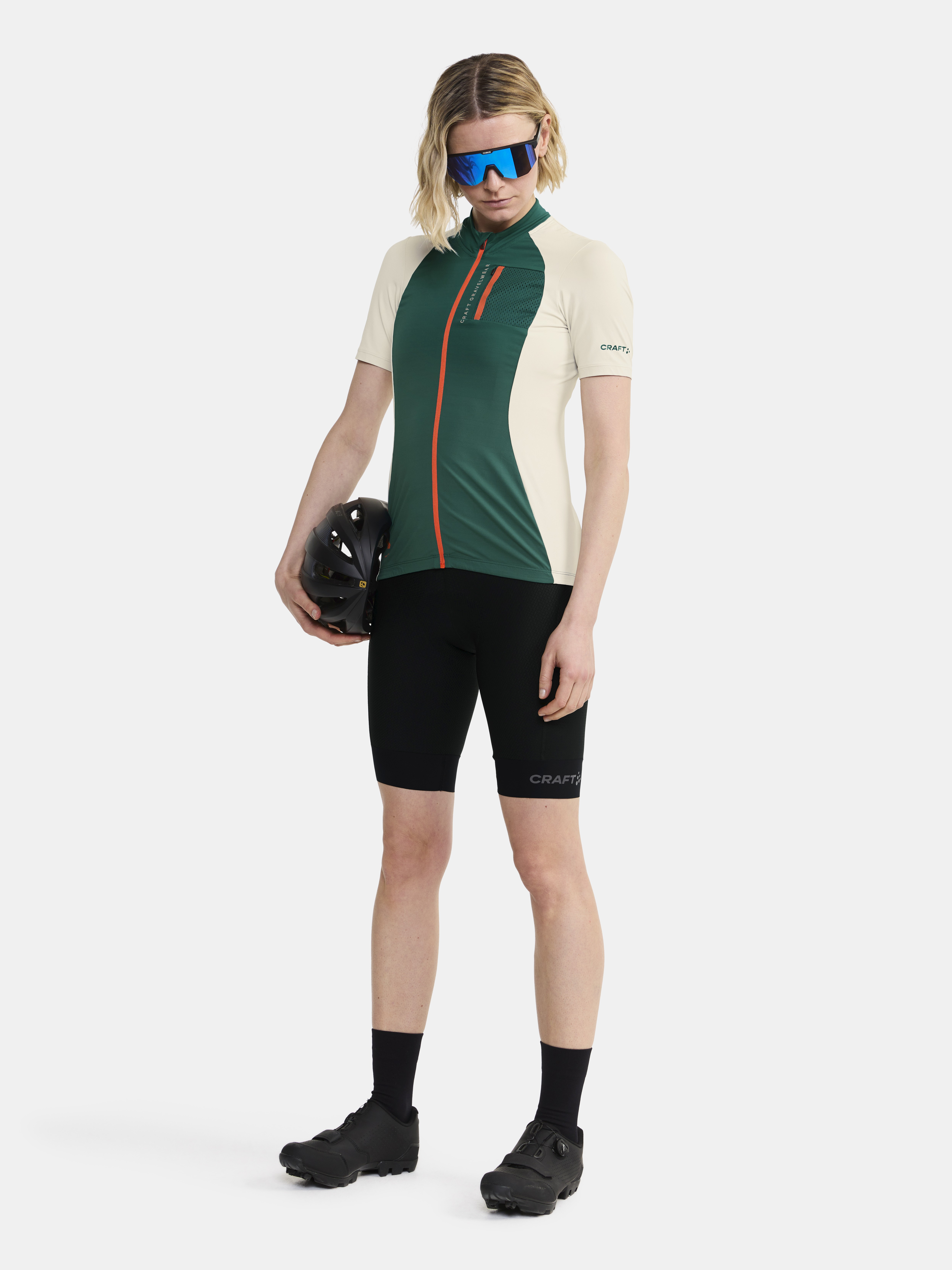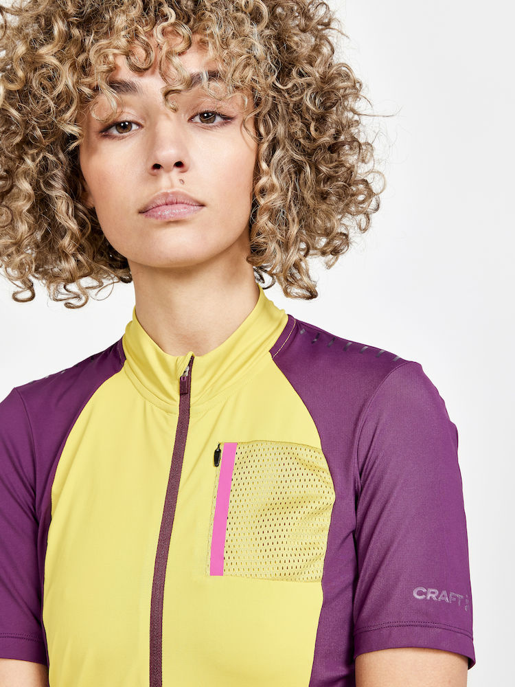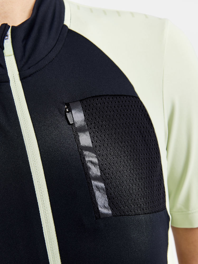 Dámský, technicky propracovaný cyklistický dres CRAFT ADV Offroad pro opravdové bikerky. Materiál: 91% recyklovaný polyamid, 9% elastan - ergonomický střih - výborný odvod potu, rychleschnoucí, chladivý efekt - reflexní ošetření - silikonový potisk na ramenou pro komfortní usazení cyklobatohu - speciální tvarování límce v oblasti zátylku pro vyšší komfort při jízdě - ve spodní části vzadu stažení do gumy se silikonovým potiskem z vnitřní strany - v zadní části trojdílná kapsa + 1 kapsička na zip - na předním díle 1 náprsní kapsa na zip