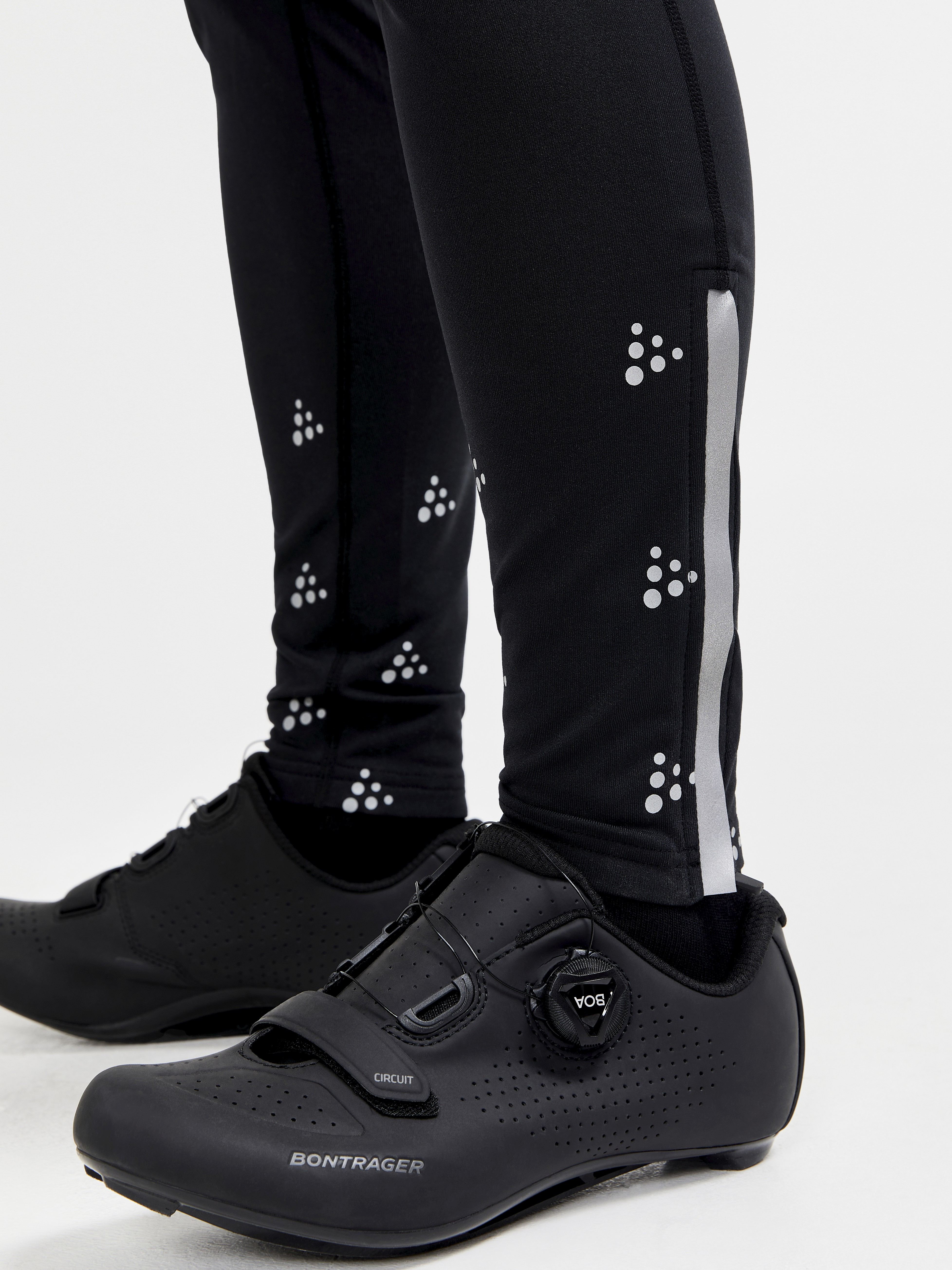 Dámské dlouhé zateplené cyklistické kalhoty se šlemi CRAFT ADV SubZ Lumen s membránou, výraznými reflexními prvky a vložkou Infinity C2 určené pro jízdu v chladném počasí.