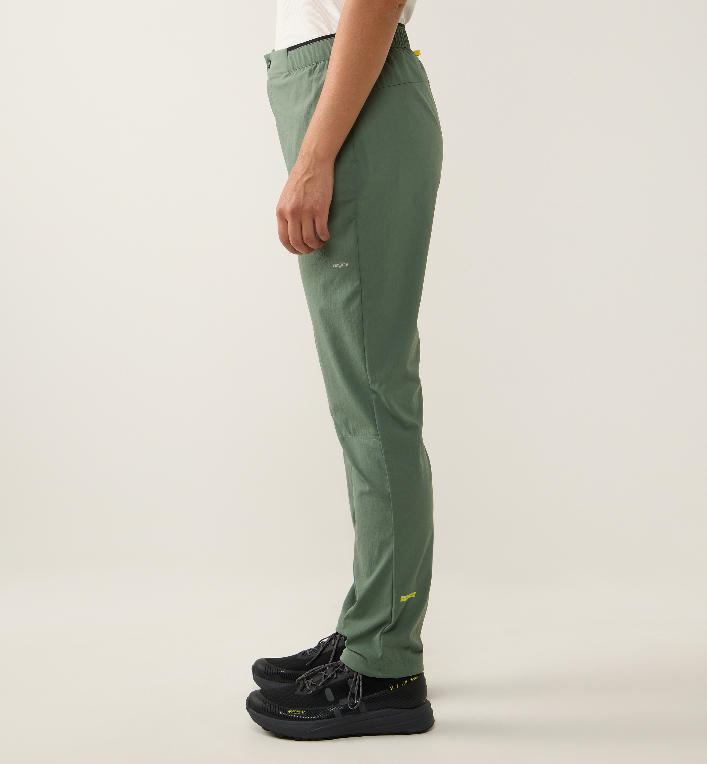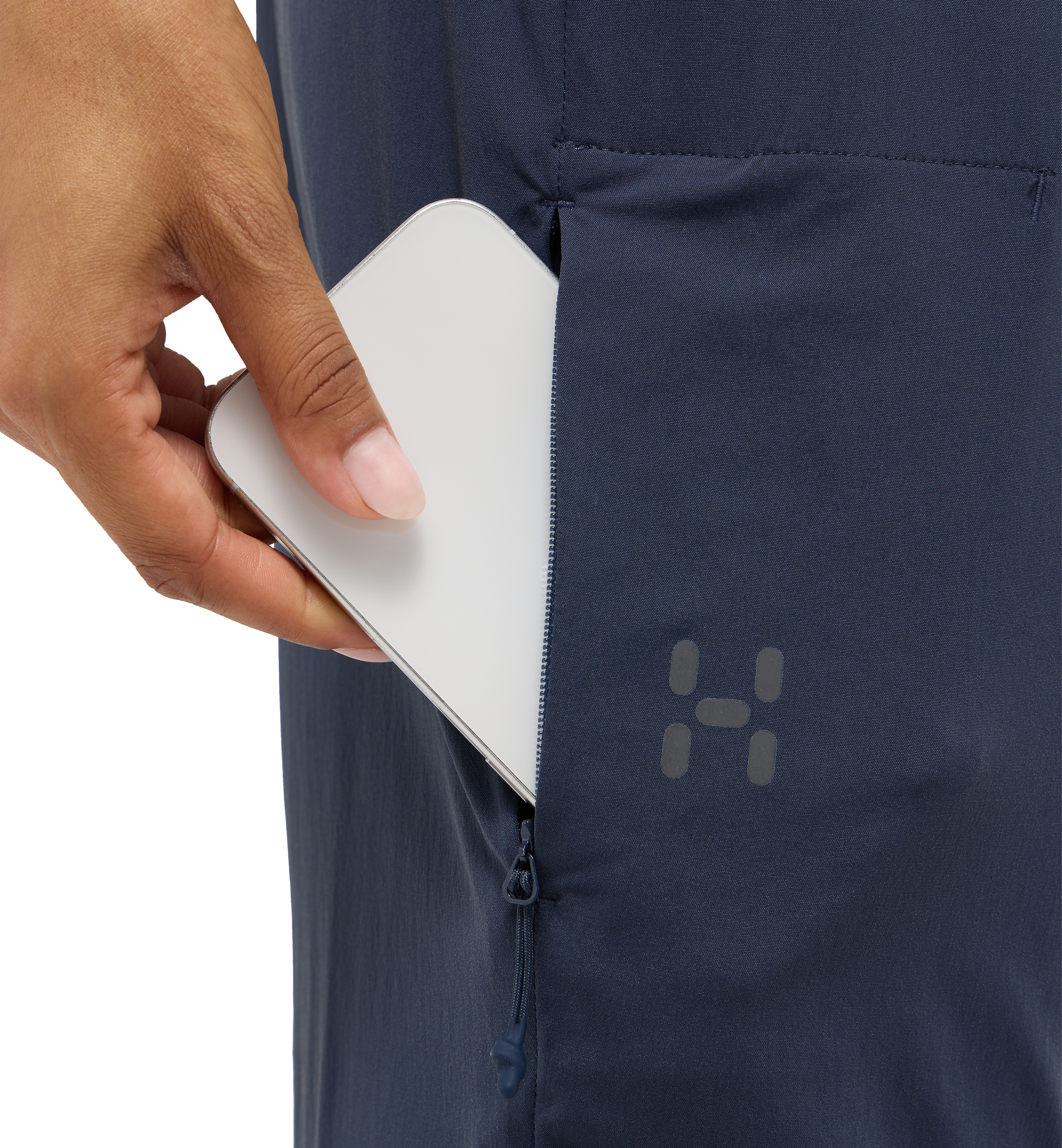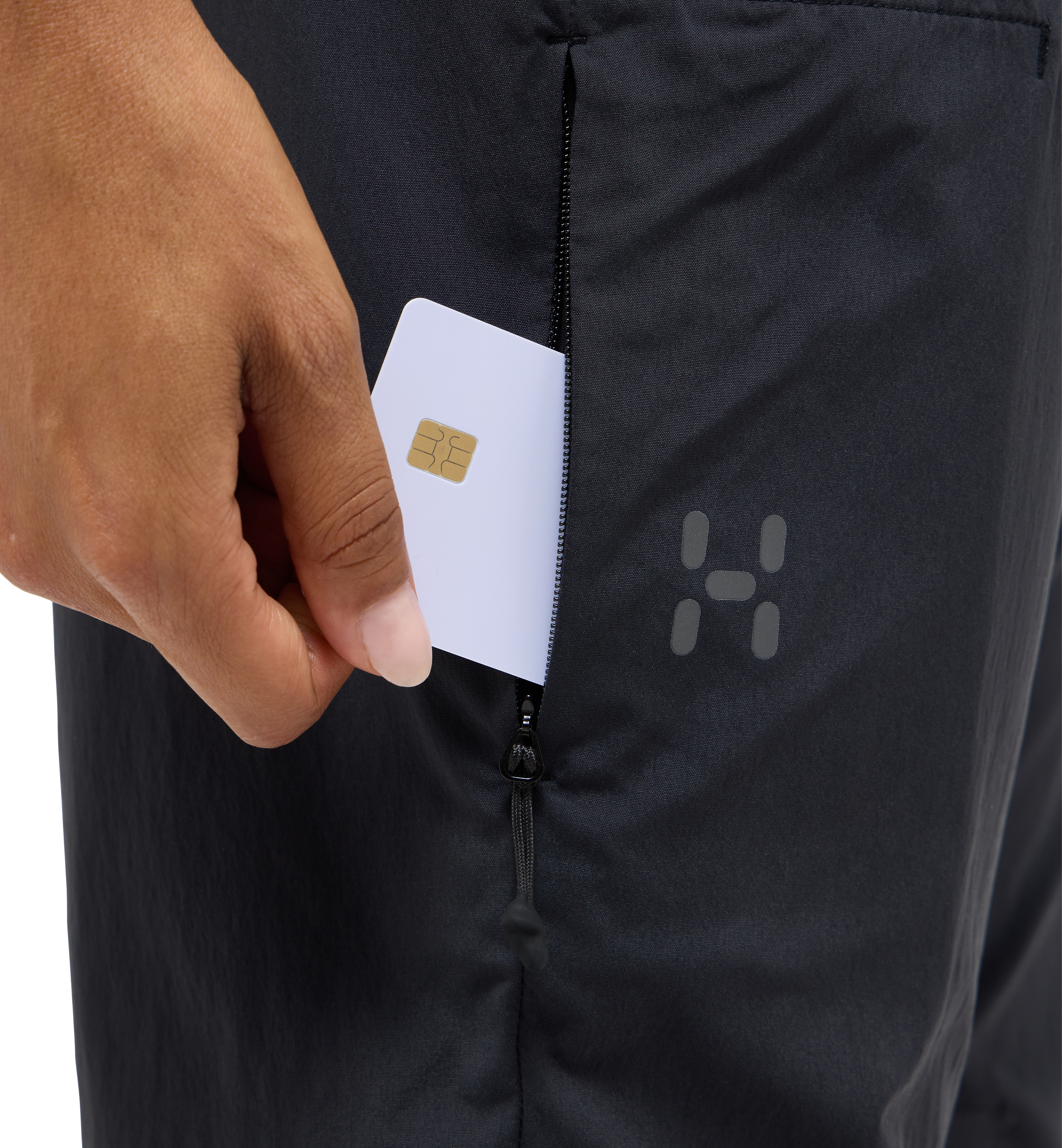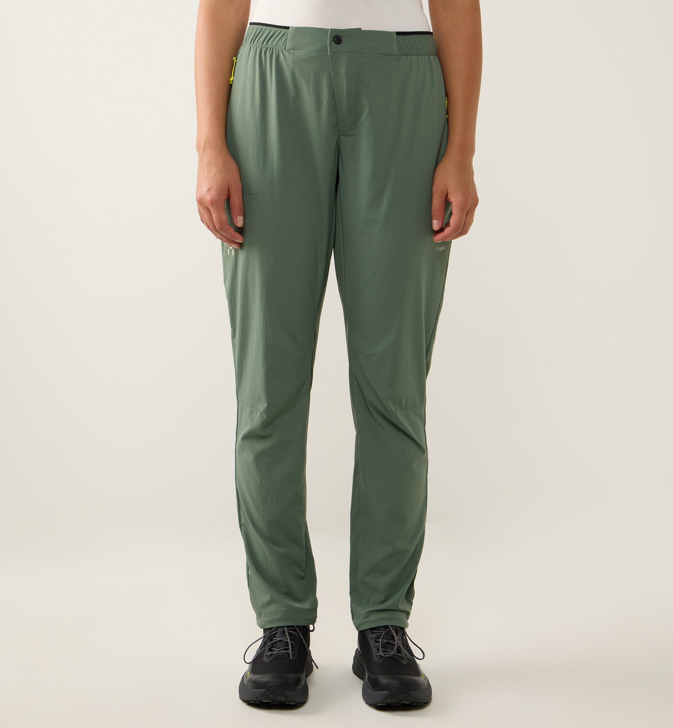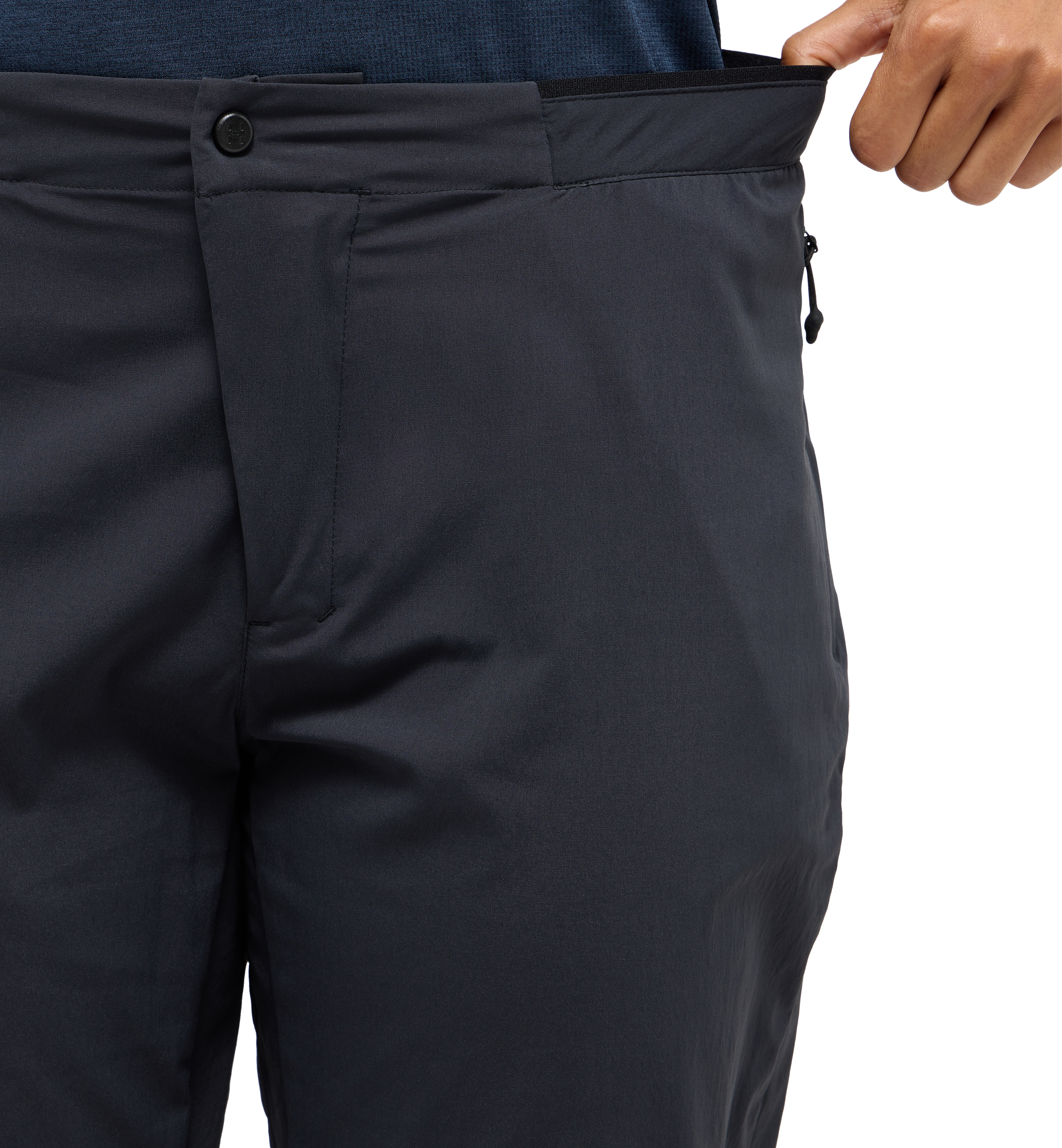 - 2 přední kapsy + 1 kapsička na zip ve švu na stehně
