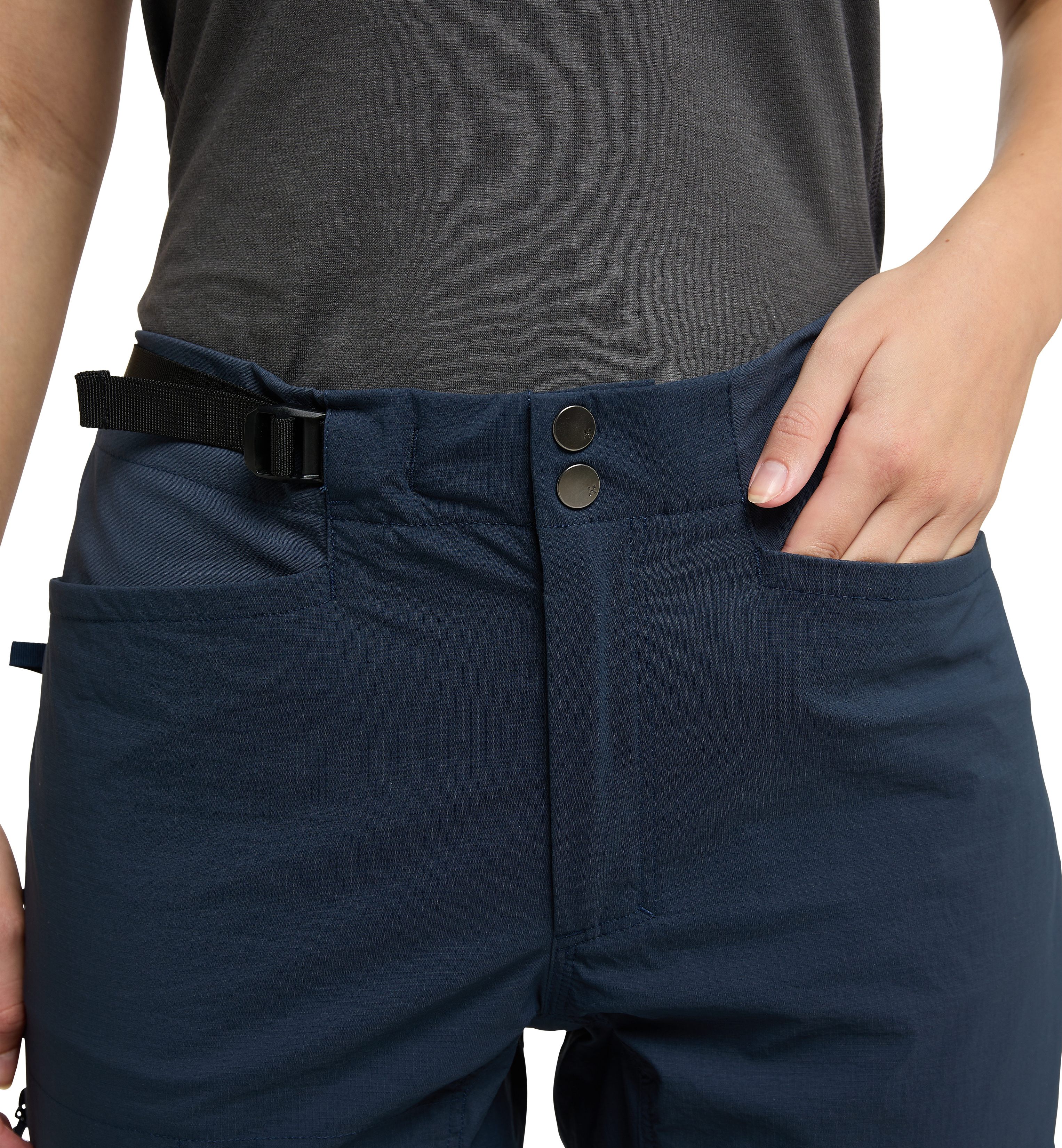 - 2 přední kapsy + 2 zadní kapsy + 1 kapsička na zip na stehně
