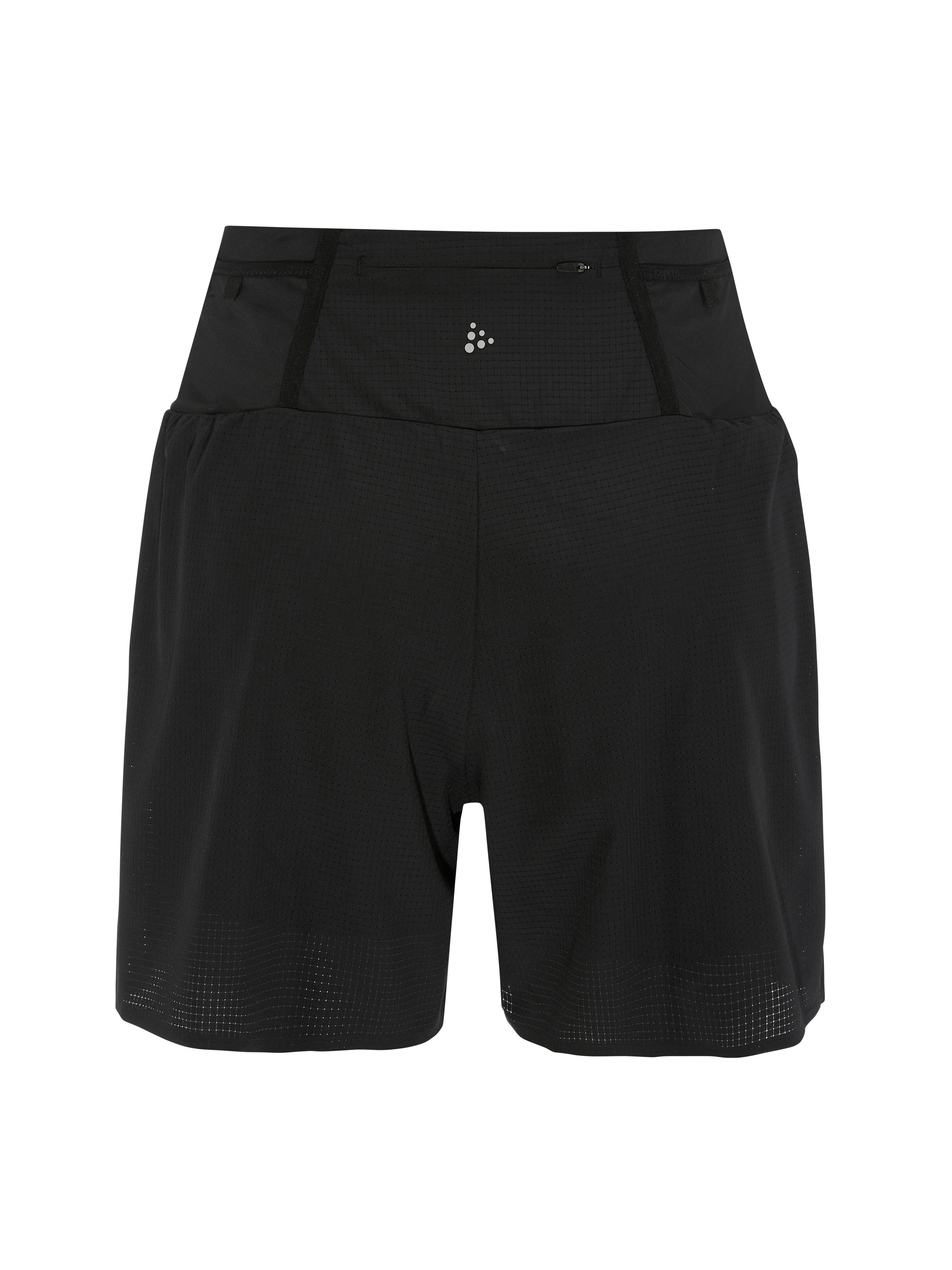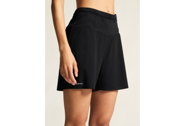 Dámské běžecké šortky 2 v 1 CRAFT PRO Trail jsou velmi lehké, prodyšné a poskytují spoustu kapes pro uložení výživy nebo jiných drobností.