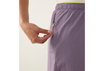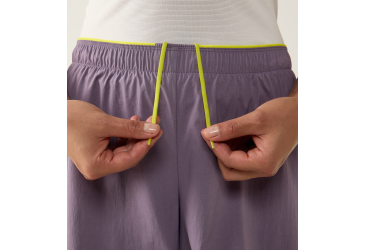 Dámské šortky atletického střihu spadající do L.I.M (Less is more) kolekce jsou určené na vysoce aerobní aktivity v horkém počasí. Jsou maximálně lehké a prodyšné a sbalitelné. Materiál, ze kterého jsou vyrobeny je pružný, rychleschnoucí a velmi příjemný na dotek. Pas je řešený stažením do pružné gumky plus šnůrka na dodatečné utažení. Po bocích nohavic jsou rozparky pro maximální komfort a volnost pohybu.