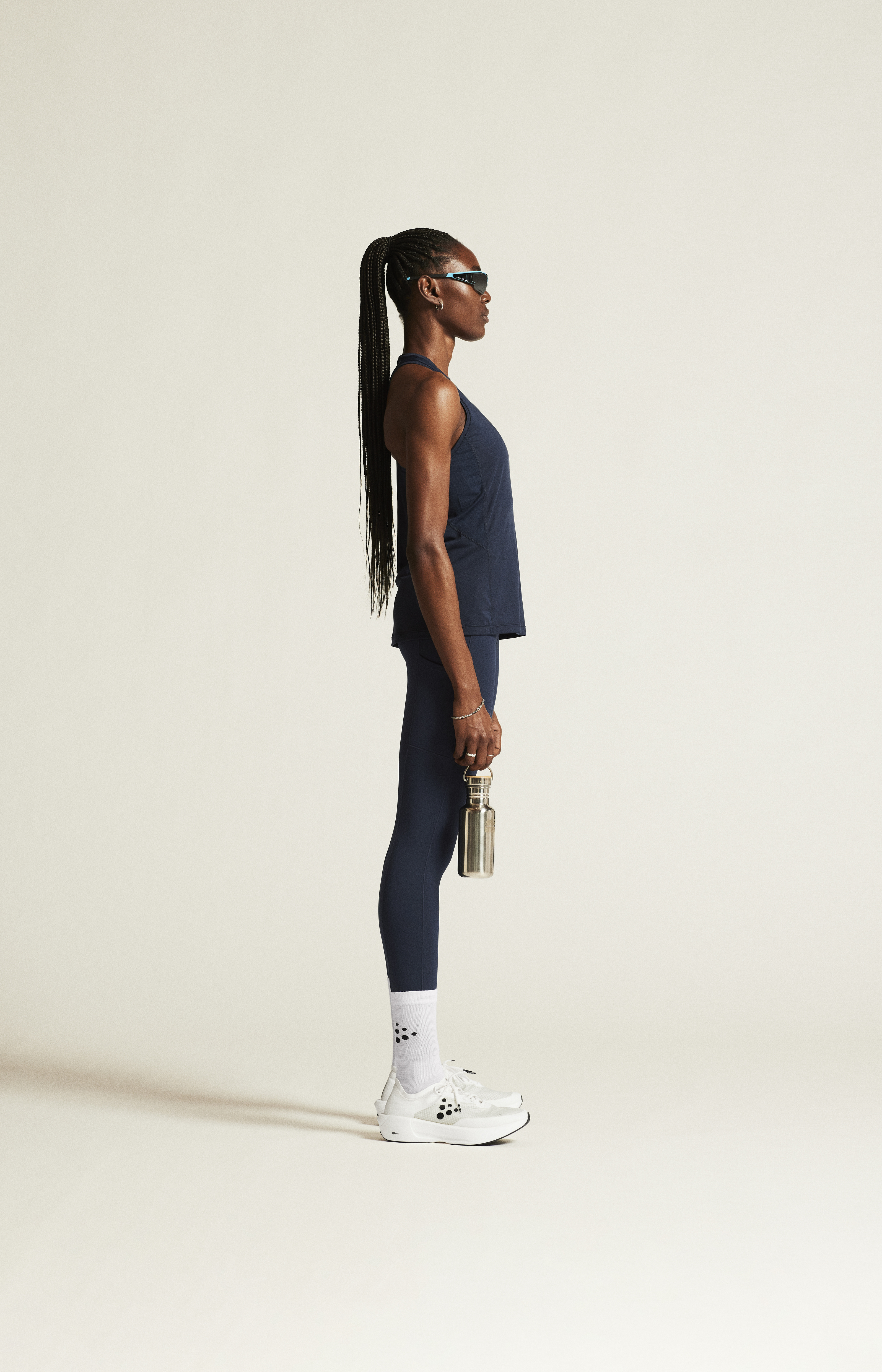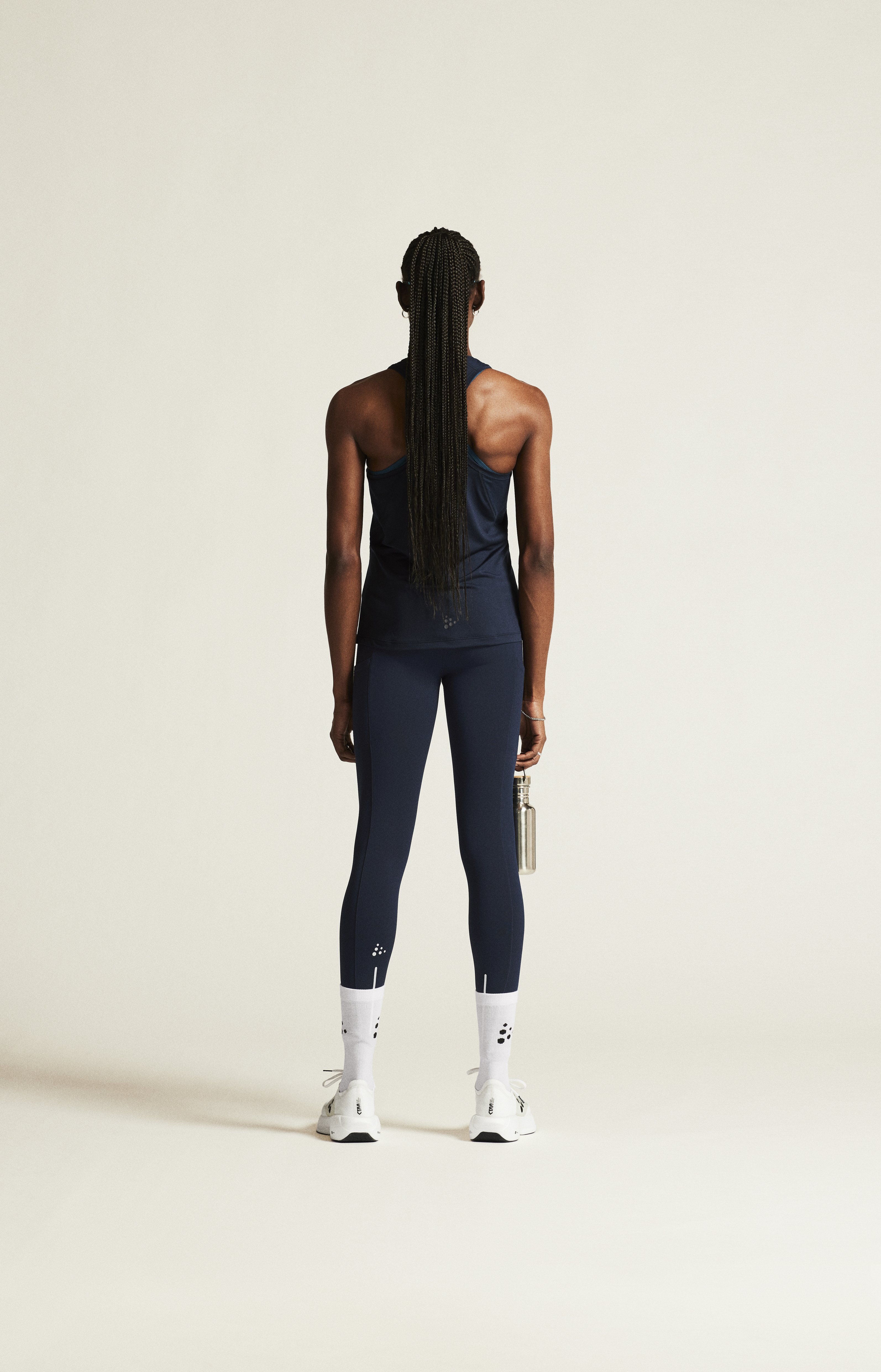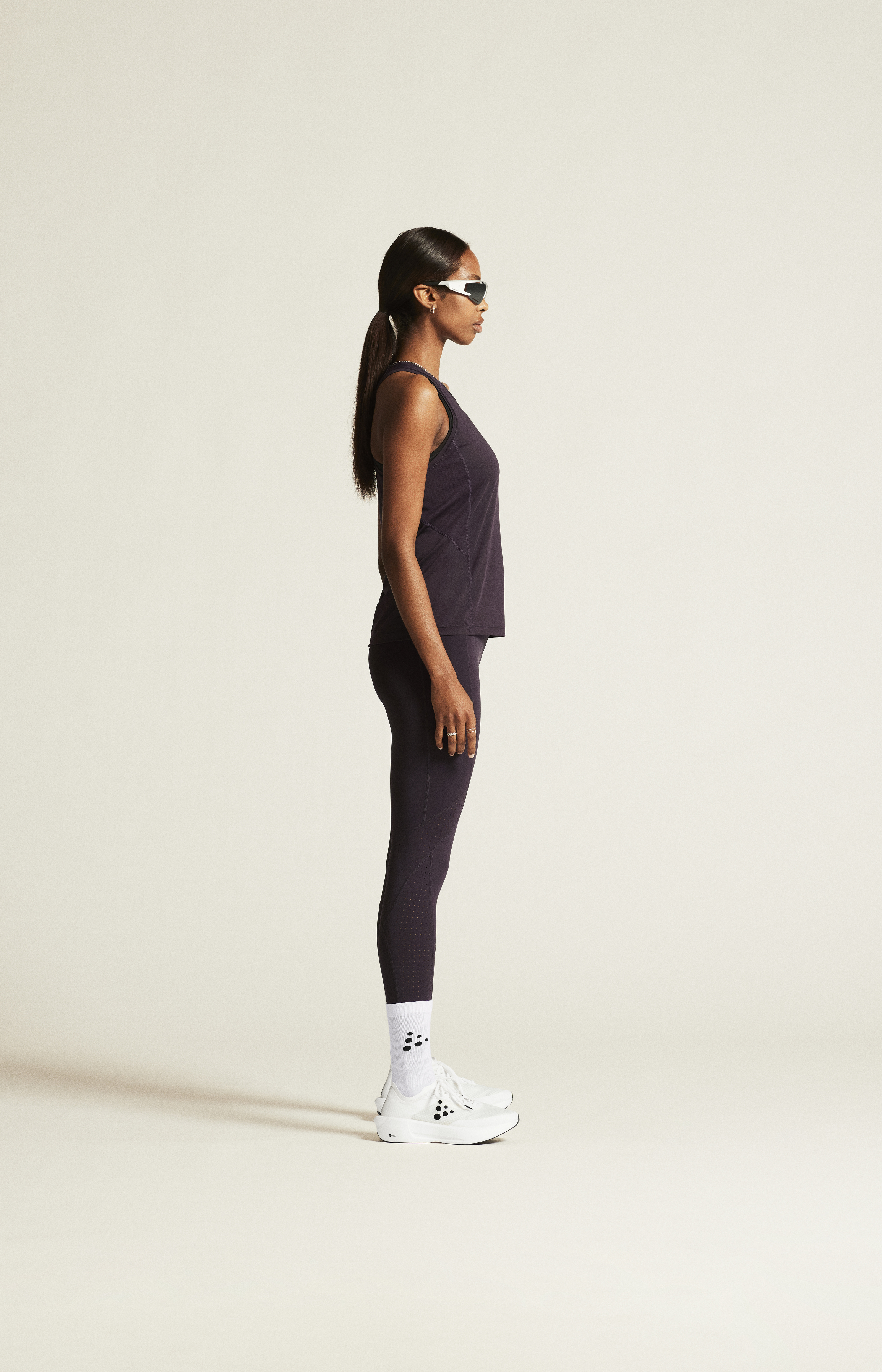 Materiál: 91 % recyklovaný polyester, 9 % elastan; Panely - 84 % recyklovaný polyester, 6 % polyester, 10 % elastan