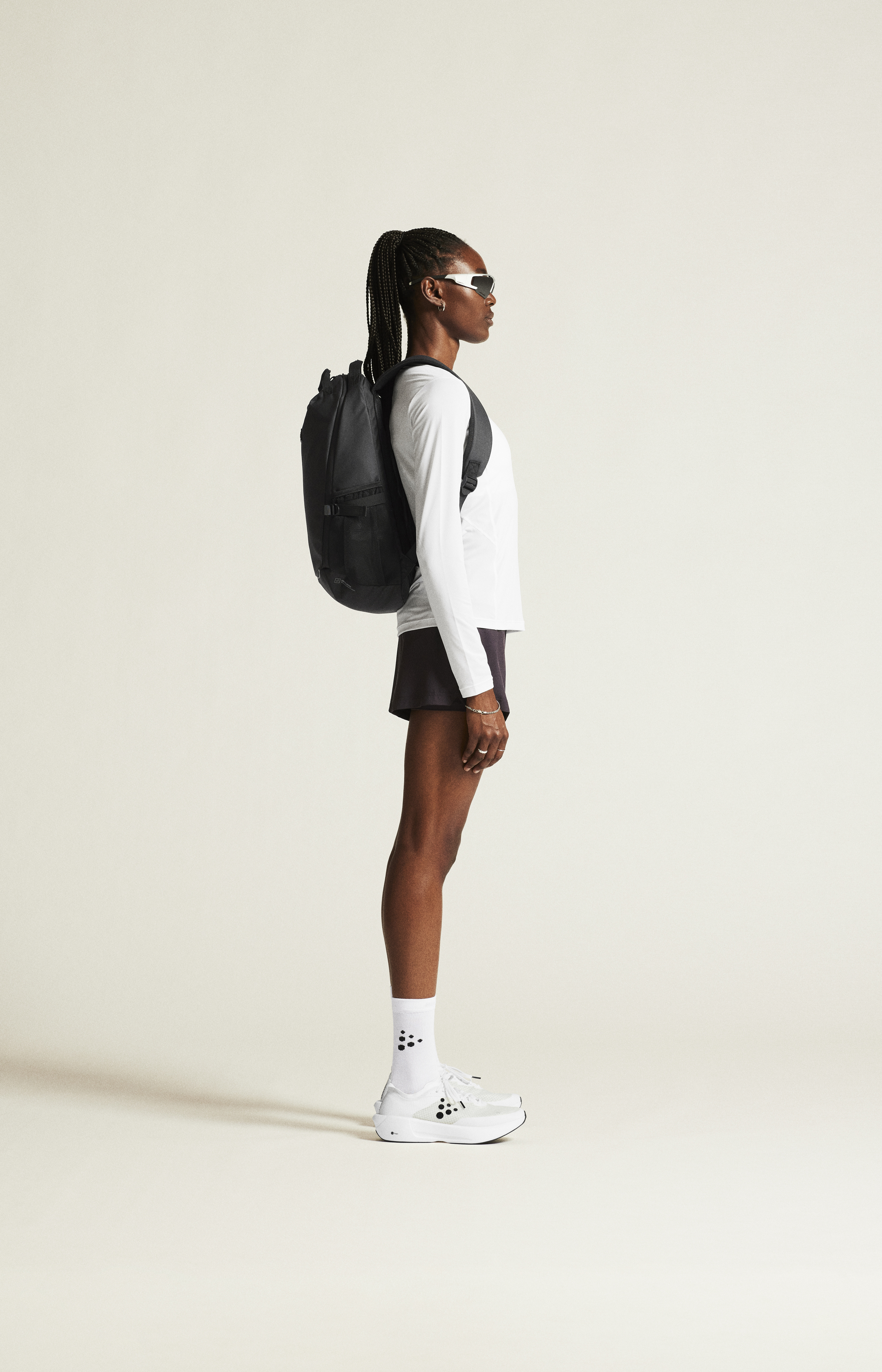 Materiál: 91 % recyklovaný polyester, 9 % elastan; Panely - 84 % recyklovaný polyester, 6 % polyester, 10 % elastan