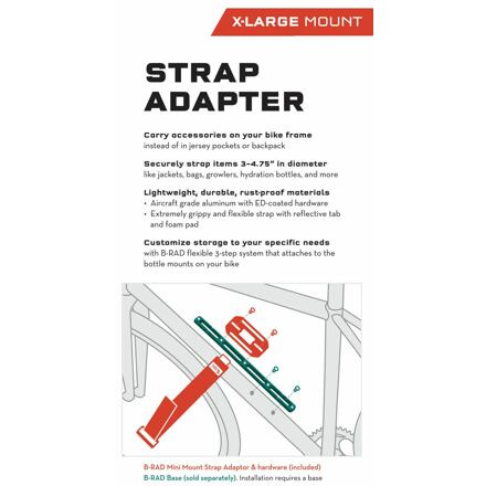 Toto rozšíření B-Rad systému umožňuje na stejnojmennou ližinu připevnit opěrnou platformu s páskem pro přichycení například CO2 bombiček, náhradní duše, nářadí, montpák a jiného podobného vybavení, které by jste jinak museli vézt v dresu, batohu anebo jinde. Pásek obsahuje reflexní nášivku a je vyroben z gumového a přilnavého materiálu. Je schopen zajistit předměty v rozpětí 50-80mm. Šířka pásku: 50mm Délka pásku: 330mm Váha: 42g