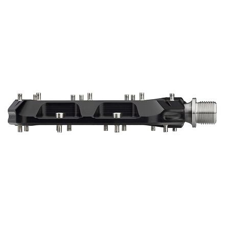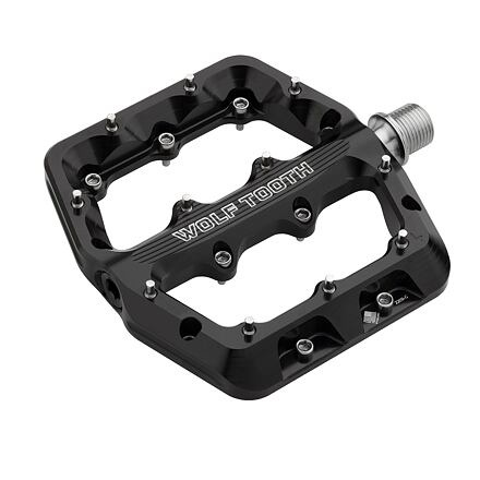 Jak je u značky Wolf Tooth zvykem, nejedná se o asijskou produkci, ale o komplexní promyšlený komponent. Vše je navrženo, zpracováno a vyráběno v americké Minnesotě. Tělo pedálů je na CNC strojích opracováno z hliníkové slitiny 6061-T6 a doplněno o osy z nerezové oceli 17-4 PH. Vítanou možností je nabídka dvou odlišných velikostí, díky čemuž by měl být uspokojen jak jezdec s drobnější nohou, tak i čahoun, který místo bot používá dětské lyže! Fakticky se tedy jedná o velikosti Small s plochou pedálu 105 x 99 mm a hmotností 373 g/pár. Větší verze Large nabízí plochu 112 x 106 mm a hmotnost 384 g/pár. Kontaktní plocha pedálu není čistě rovná, ale pro správné usazení nohy využívá duálně konkávní profil, tedy s prostorově ztenčujícím profilem z vnějších okrajů směrem ke středu. Síla pedálu v nejužším středovém bodě je pouhých 12,5 mm, na okrajích je to 14 mm. Jisté spojení pedálu s podrážkou s podrážkou zajišťuje sada 11 nerezových pinů na každé straně pedálu. Šroubují se z protilehlé strany, proto není problém s jejich výměnou. Balení obsahuje navíc 6 náhradních pinů, pro strýčka příhodu. Pedály jsou vybaveny trojicí kvalitních, plně zapouzdřených ložisek, které z vnější strany navíc chrání specificky navržené radiální těsnění. Vše je opět plně a snadno servisovatelné, k demontáži stačií základní sada imbusů. Už chápete co je odlišuje od ostatních a od asijské produkce? Materiál těla: Alu 6061 T6 (CNC obráběno) Materiál osy: nerez ocel TBD Tři vysoce kvalitní plně utěsněná ložiska v každém pedálu, plus pouzdro Igus Cíleně navržené těsnění bránící vniku nečistot 11 pinů z nerez oceli se zadní montáží na každé straně pedálu (délka 4,5 mm) Dvojitě konkávní tvar kontaktní plochy pro ideální usazení chodidla Nízký profil pedálu (výška 12,5 až 14 mm) Zkosené hrany pedálů pro vyšší odolnost při kontaktu s terénem Plně servisovatelné, zaručená dostupnost náhradních dílů Dvě velikosti: Large – 112 x 106 mm (373 g/pár) / Small – 105 x 99 mm (384 g/pár) Dostupné ve čtyřech barvách: black, orange, blue, ultraviolet purple